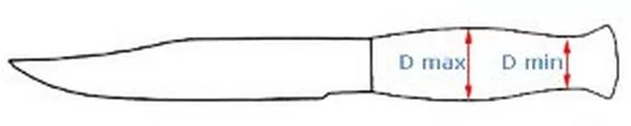 13. Ножи с бочкообразной рукоятью, у которых разница максимального диаметра в средней части бочкообразной рукояти и минимального диаметра в области навершия не превышает 8 мм.