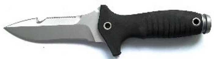 Нож на расстоянии 1/3 длины клинка от острия имеет заточенный крюк, предназначенный для вспарывания шкур, разрезания сетей, перерезания строп и чего фантазия подскажет.